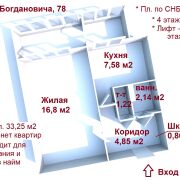 Комфортная планировка: «Улучшенный проект» с просторной кухней 7.58 м2. Площадь по СНБ составляет 36.75 м2.