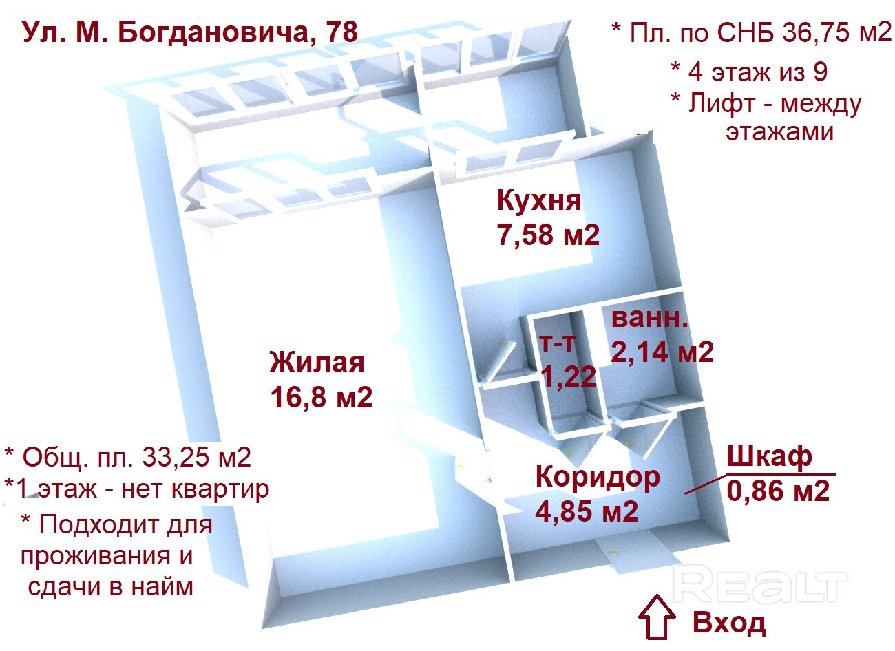 Площадь указана по СНБ.