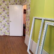 Окна деревянные. Новые окна ПВХ остаются в подарок. Дверь входная металлическая, новая. Межкомнатные двери и полы деревянные.