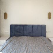 • Прикроватные светильники привезены из Италии, под ними – тумбы с выдвижными ящиками с каждой стороны кровати, над каждой тумбой – проходные выключатели (можно выключить большой свет лежа в кровати).