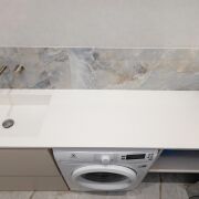 ·  Встроенная техника – инверторная, сенсорная, белого цвета, бренд Electrolux: духовой шкаф, микроволновка, варочная индукционная панель, посудомоечная машина, встраиваемый холодильник полный No Frost, мощная вытяжка с подсветкой Elica.