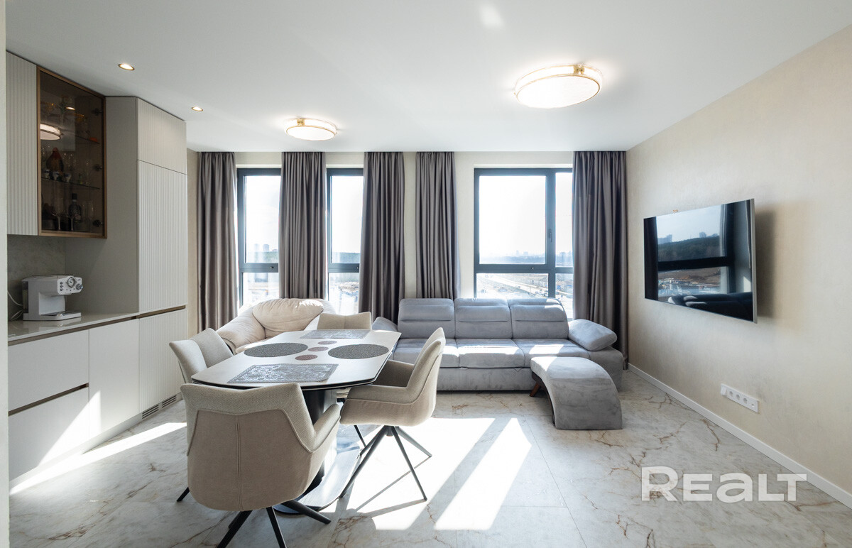 ·  Квартира с премиальной отделкой по индивидуальному дизайн-проекту в современном стиле с продуманной планировкой:объединенная кухня-гостиная с 3-мя панорамными окнами, отдельная спальня с большими панорамными дверями и выходом на террасу, два санузла, гардеробная с вентиляцией, мебель по индивидуальному проекту. Гарантия на ремонтные работы.