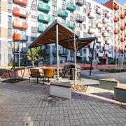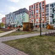 • Благоустроенная придомовая территория – закрытый двор свободный от автомобилей, все парковочные места расположены по внешнему периметру дома. Во дворе ландшафтное озеленение, летняя мебель, ночная подсветка, детская и тренажерная площадки. Есть свое место в велобоксе. Видеонаблюдение по всему кварталу, шлагбаумы, зарядки для электромобилей.