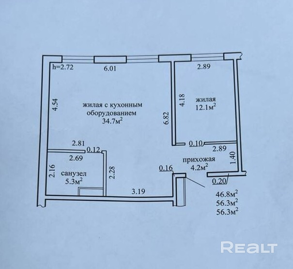 • Общая площадь – 56,3 м.кв.
