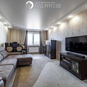 В квартире выполнен качественный ремонт: плитка с теплым полом в коридоре и ламинат в комнатах и на кухне. Во всей квартире установлены натяжные потолки, что придает пространству современный вид.