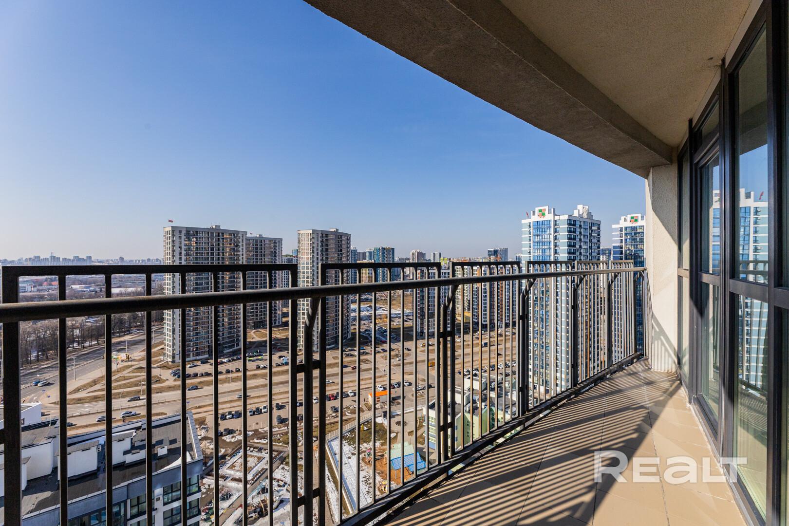 Освещение — квартира наполнена естественным светом благодаря большим окнам, а с 20 этажа открывается красивый панорамный вид на город и невероятный закат, который каждый день будет радовать глаз.