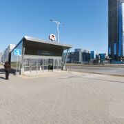 Лучшее расположение - около входа в станцию метро «Аэродромная», напротив находится ТЦ «Авиа Молл» и башен Международного финансового центра.