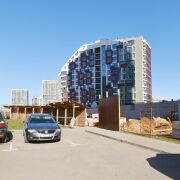 Невысокий 12-ти этажный дом уникальной архитектуры с панорамным остеклением