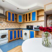 - Просторная кухня, площадью почти 10 кв.м. станет отличным местом для семейных ужинов и приготовления пищи. Здесь установлен акцентный и функциональный кухонный гарнитур, а также есть место для обеденной зоны.