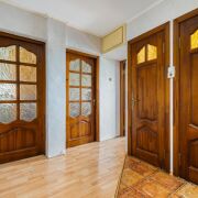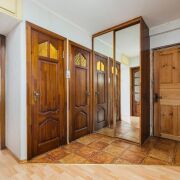 -В прихожей установлен вместительный шкаф-купе, который хорошо вписывается в интерьер, а также визуально увеличивает помещение, посредством зеркальных дверей.