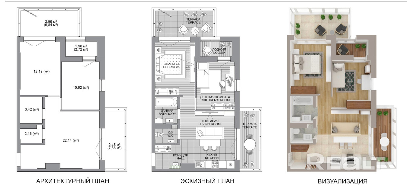 - Лобби и общественные зоны для жилого дома, а также технические помещения для функционирования здания.