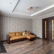 На полу уложен качественный ламинат поверх натурального паркета (при желании паркет можно отреставрировать).