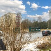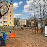 Тишина: Дом удален от шумных дорог, двор утопает в зелени. При этом остановка транспорта — в 3 минутах от подъезда.