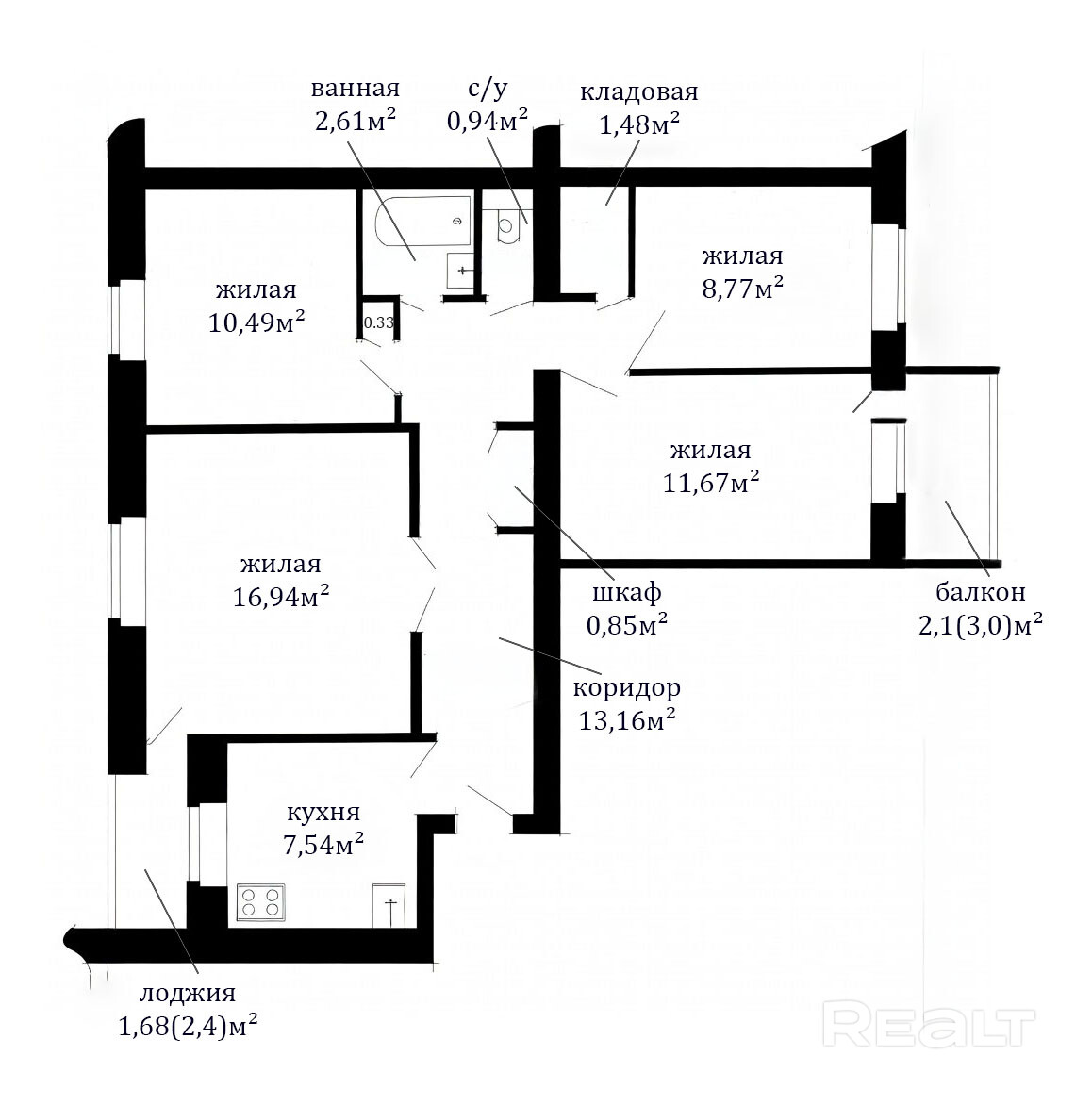 Бонус: Есть кладовая (1.48 м2) для хранения вещей.