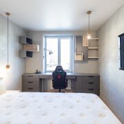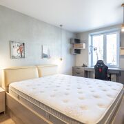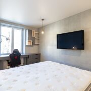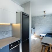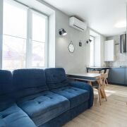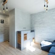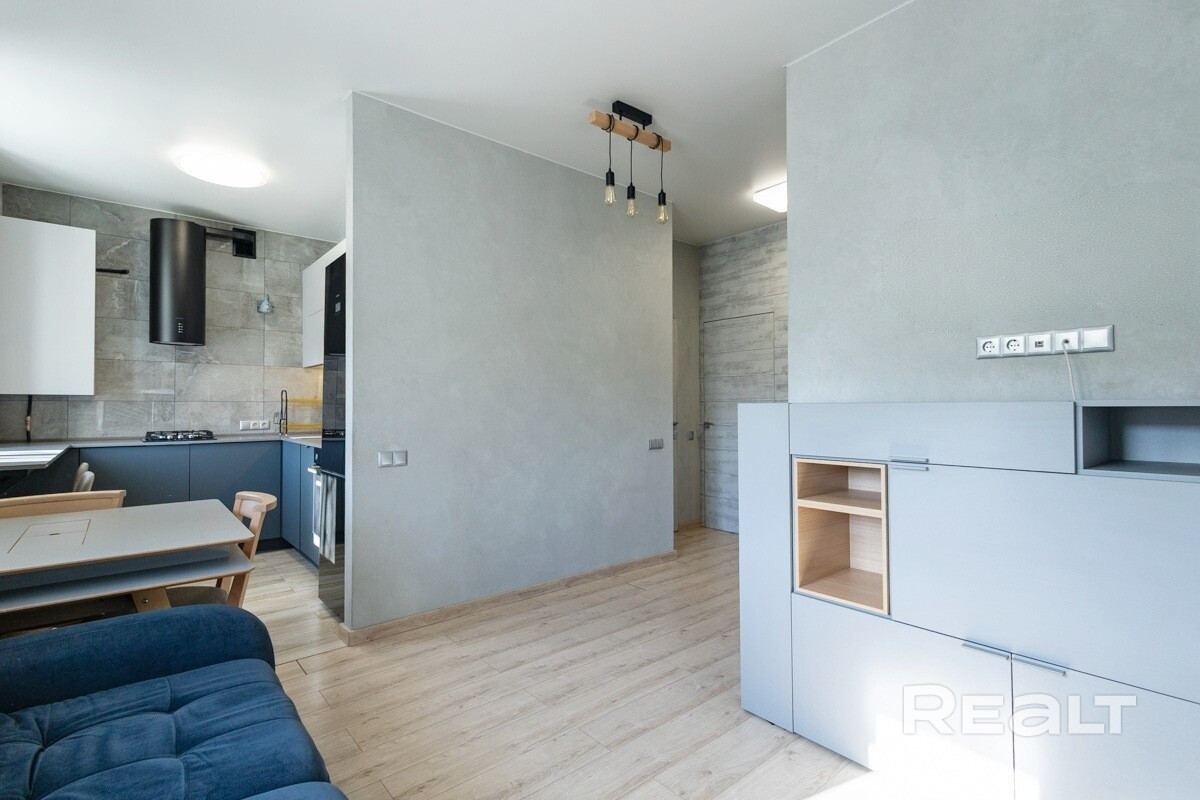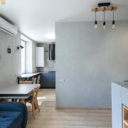 Квартира оснащена всей необходимой мебелью и техникой, поэтому вы можете сразу же наслаждаться уютом без лишних хлопот. Главная особенность этого объекта — отделка стен натуральным камнем, здесь нет ни грамма обычных обоев.