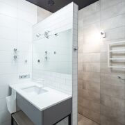 Такое решение не только выглядит роскошно, но и позволяет всегда поддерживать идеальную чистоту с минимальными усилиями. Ремонт выполнен на очень высоком уровне с использованием исключительно дорогих материалов.