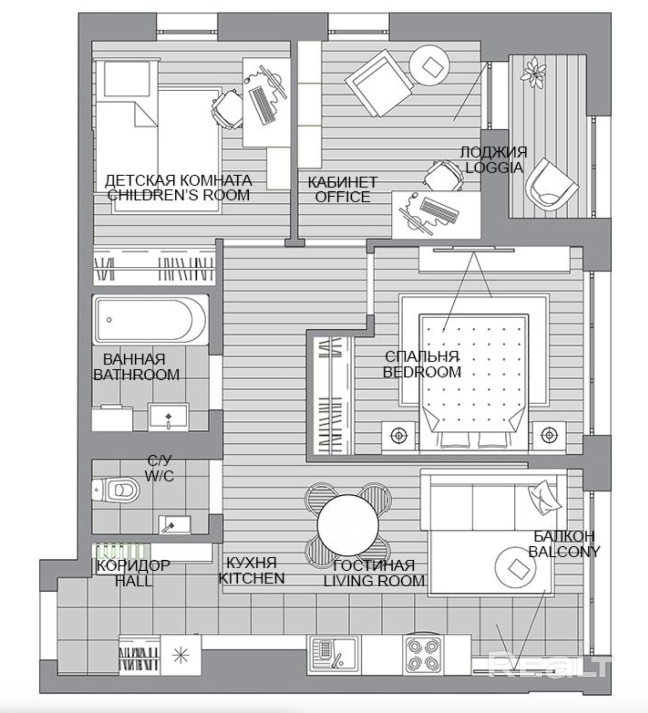 - Лобби и общественные зоны для жилого дома, а также технические помещения для функционирования здания.