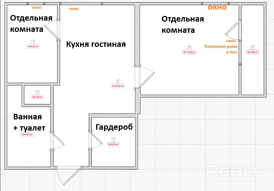 - Раздельных комнат