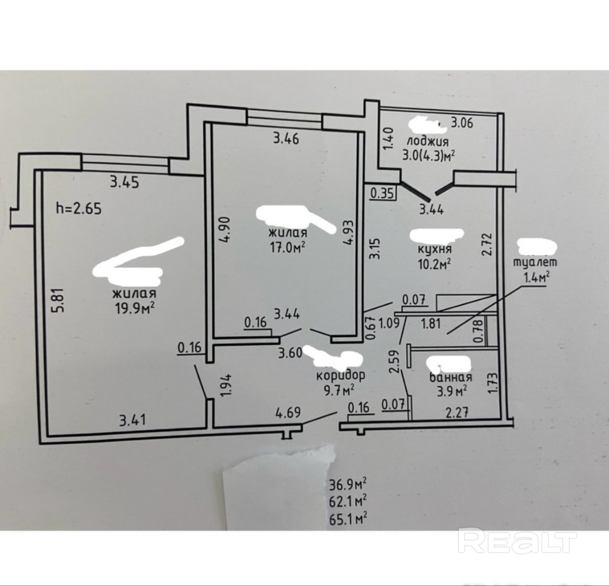 36.9 м²