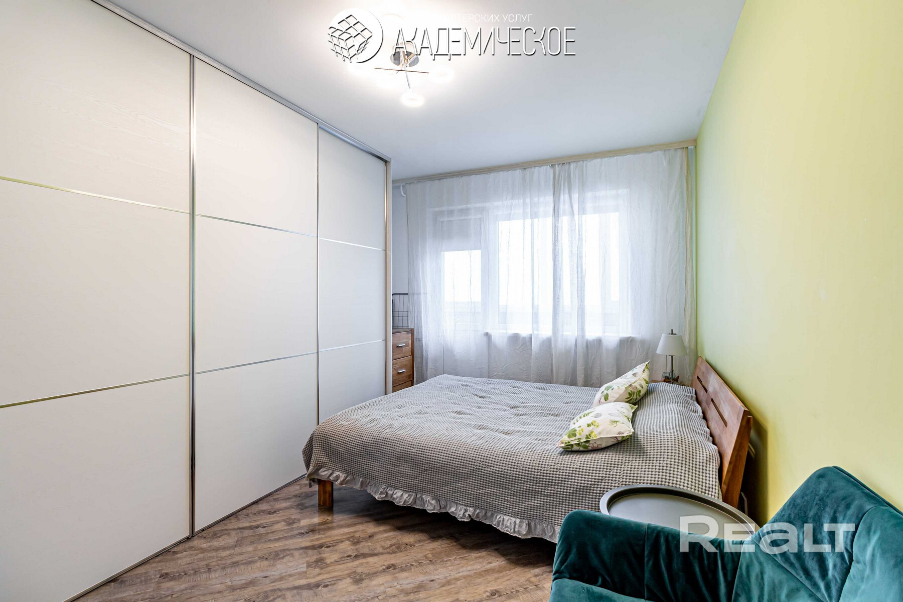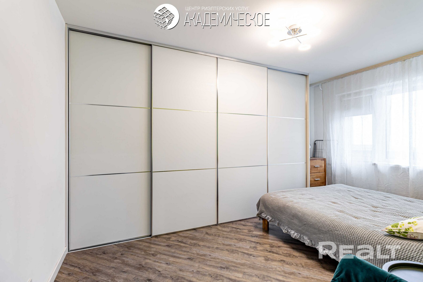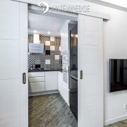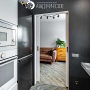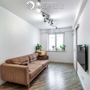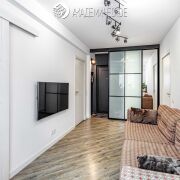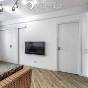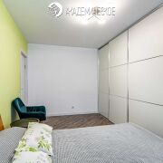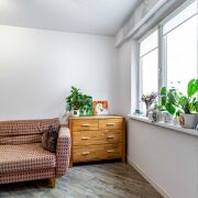 Интерьер выполнен в сдержанном стиле с использованием натуральных материалов. Межкомнатные двери, комоды и кровать изготовлены из массива дерева. В квартире организованы два полноценных спальных места: кровать с беспружинным матрасом в спальне и изготовленный под заказ диван с ортопедическим основанием в гостиной. Также предусмотрена вместительная система хранения, в которую интегрировано удобное рабочее место для удаленной работы. Установлены качественные ПВХ-стеклопакеты, балкон застеклен, утеплен и облагорожен.