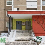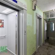 Тамбур на четыре квартиры, закрываеся на замок. 2 лифта.