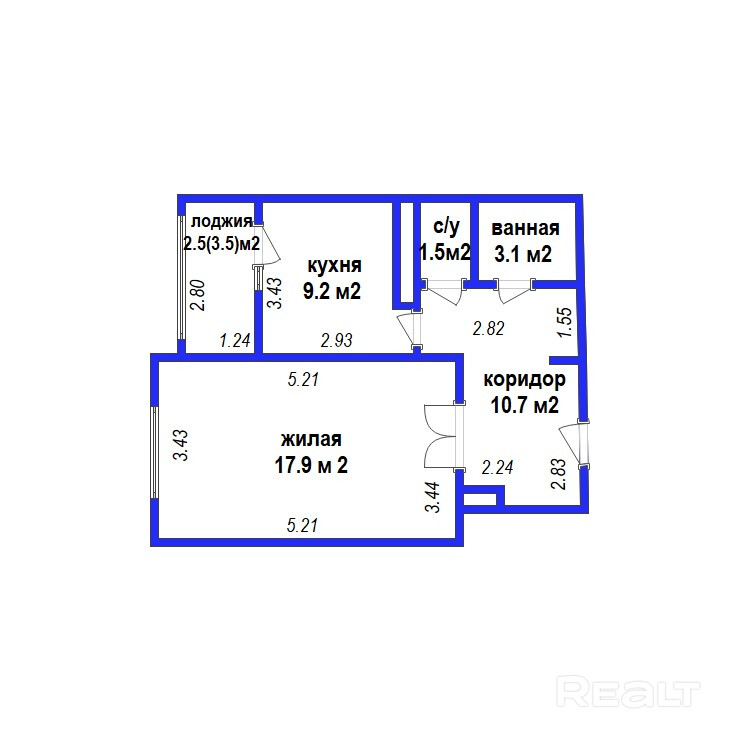 Жилая площадь: 17.9