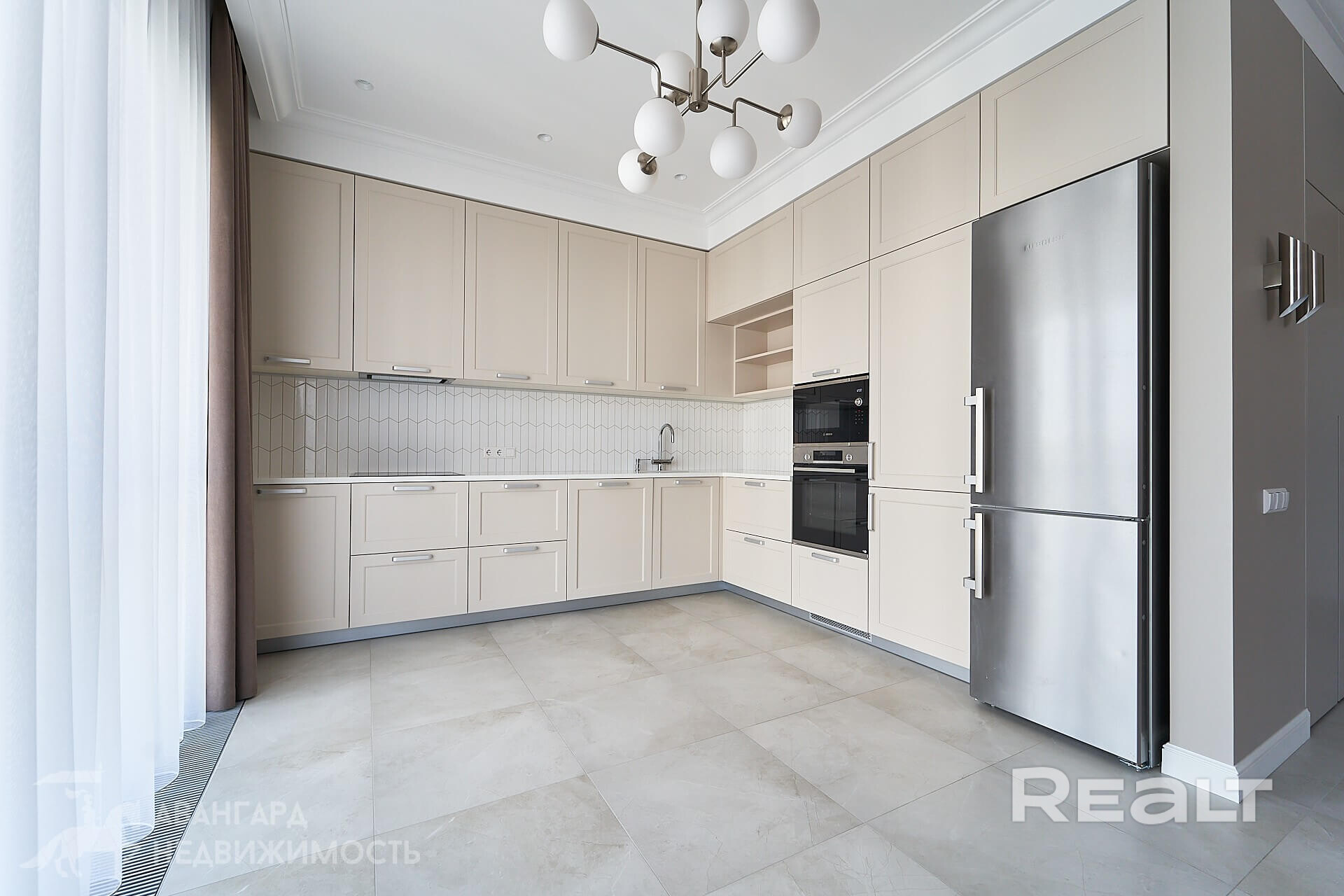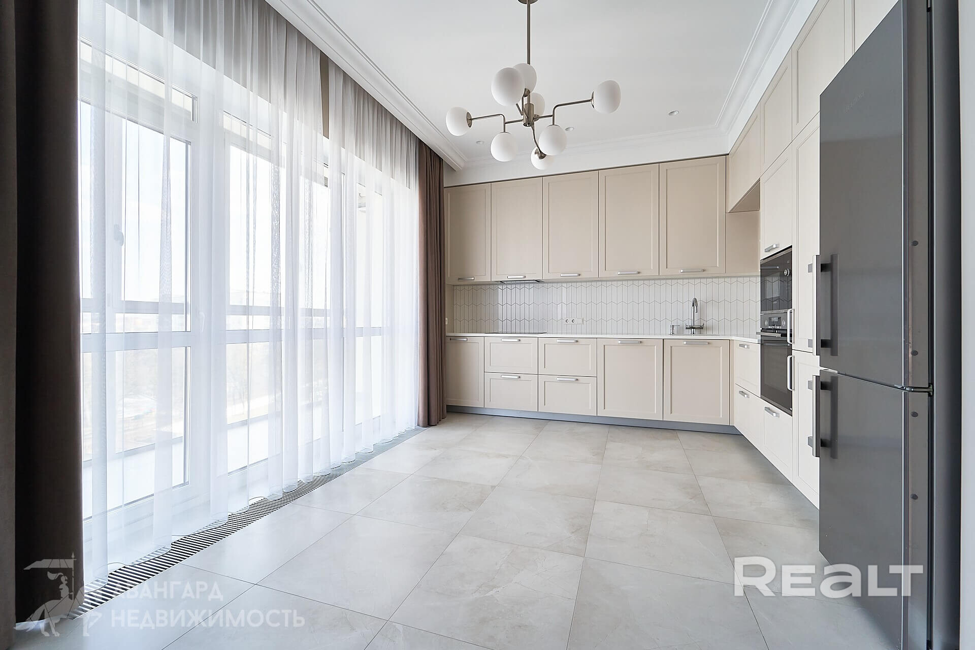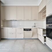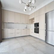 Площадь квартиры по СБН: 113.1 м2. В квартире продуманная планировка: очень просторная кухня-гостиная, три спальни, два санузла, гардеробная комната. Высота потолков 3 метра.