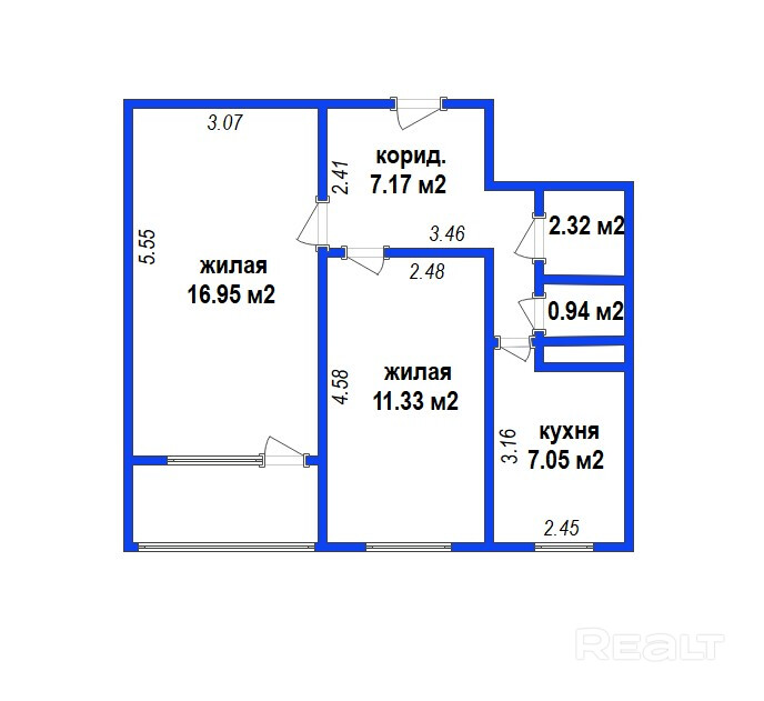 две изолированные комнаты 11,33 кв.м. и 16.95 кв.м.,