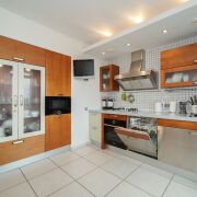 - установлен кухонный гарнитур- Comprex, Италия со встроенной бытовой техникой: Посудомоечная машина -Whirlpool ADG4956M, Германия. Микроволновая печь- Bosch BFL634G.1, Германия. Духовой шкаф- Bosch HBG634B.1, Германия. Холодильник No Frost -Samsung BRB260187WW, Польша. Варочная панель-Electrolux EGW96343, Италия. На столешницу из кварцевого (искусственного) камня установлены: