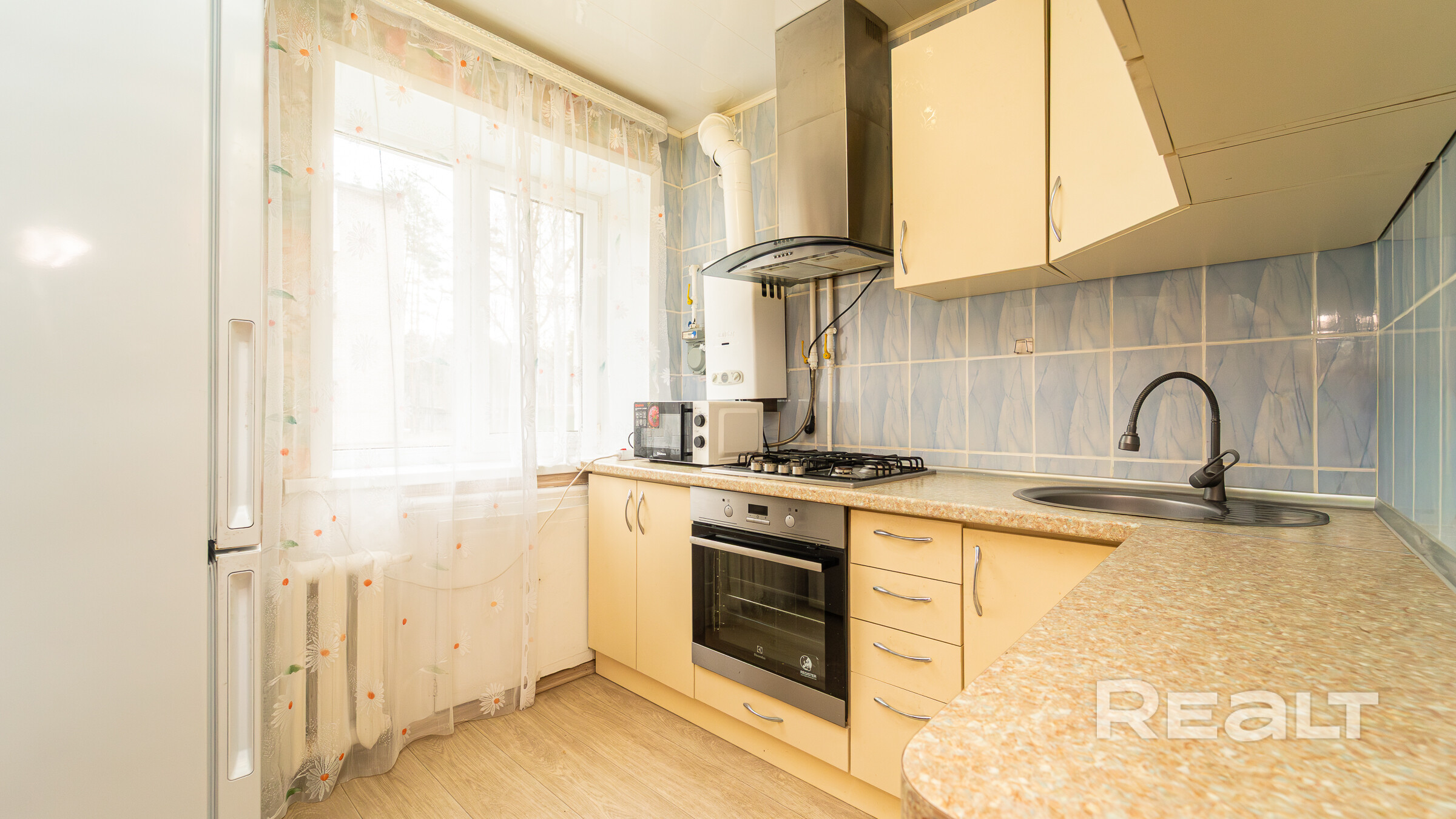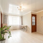 В квартире отличный ремонт. Окна ПВХ, натяжные потолки, металлическая входная дверь. На полу – ламинат. Новые межкомнатные двери. Современная угловая кухня, газовая варочная панель, электрический духовой шкаф. В коридоре шкаф купе.