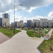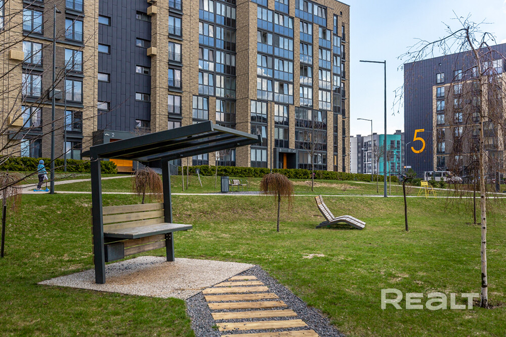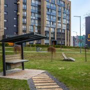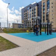 Спортивная площадка с workout-оборудованием, благоустроенные беговые и велосипедные дорожки, крытая велопарковка.