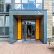 Подъезд с выходами на две стороны. Один на улицу, второй, в закрытый благоустроенный двор с детскими площадками.