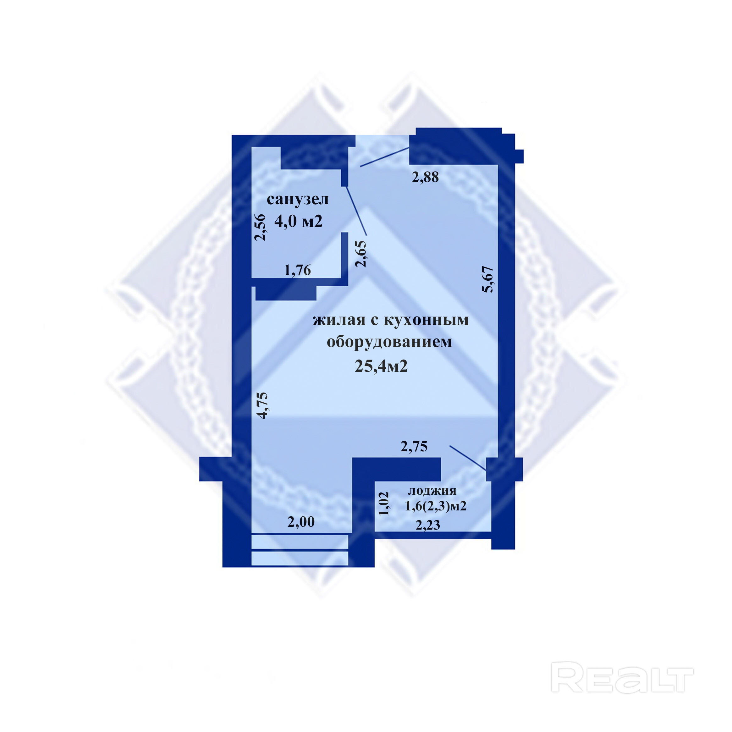 Жилая площадь - 25.4 м2
