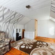 - Двухуровневая квартира с четырьмя комнатами расположена на двух этажах, создавая удобную функциональную планировку. На первом уровне находятся кухня площадью 7,2 кв.м, детская, гостиная и совмещенный санузел. На втором уровне — две комнаты, разделенные перегородкой. Интерьер оформлен со смешанными материалами: в детской комнате уложен ламинат, в остальных помещениях — деревянные доски, что придаёт дому уютный, естественный вид. Важно отметить, что существует возможность создать открытую планировку кухни-гостиной в одной из больших комнат, что позволит полностью переосмыслить пространство под ваши потребности. Квартира имеет отдельный вход, обеспечивающий полную приватность и независимость. Все помещения хорошо освещены и воздушны благодаря продуманной архитектуре.