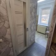 В квартире установлены окна ПВХ, напольное покрытие - ламинат и плитка в с/у. Входная дверь металлическая, межкомнатные - шпон. Новая сантехника и проводка.