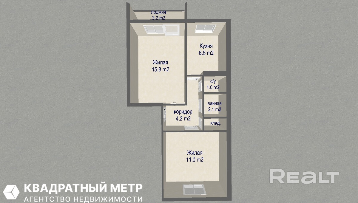 Удачная планировка, изолированные комнаты правильной формы на разные стороны. Кладовая для хранения вещей. Деревянные большие окна