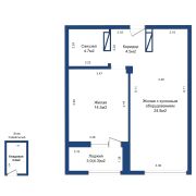 • Большая кухня‑гостиная 24,8 м2 — пространство, которое легко зонировать и при желании выделить вторую изолированную комнату.