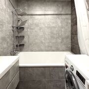 Санузел и ванная комната оформлены современной плиткой и оснащены качественной сантехникой.