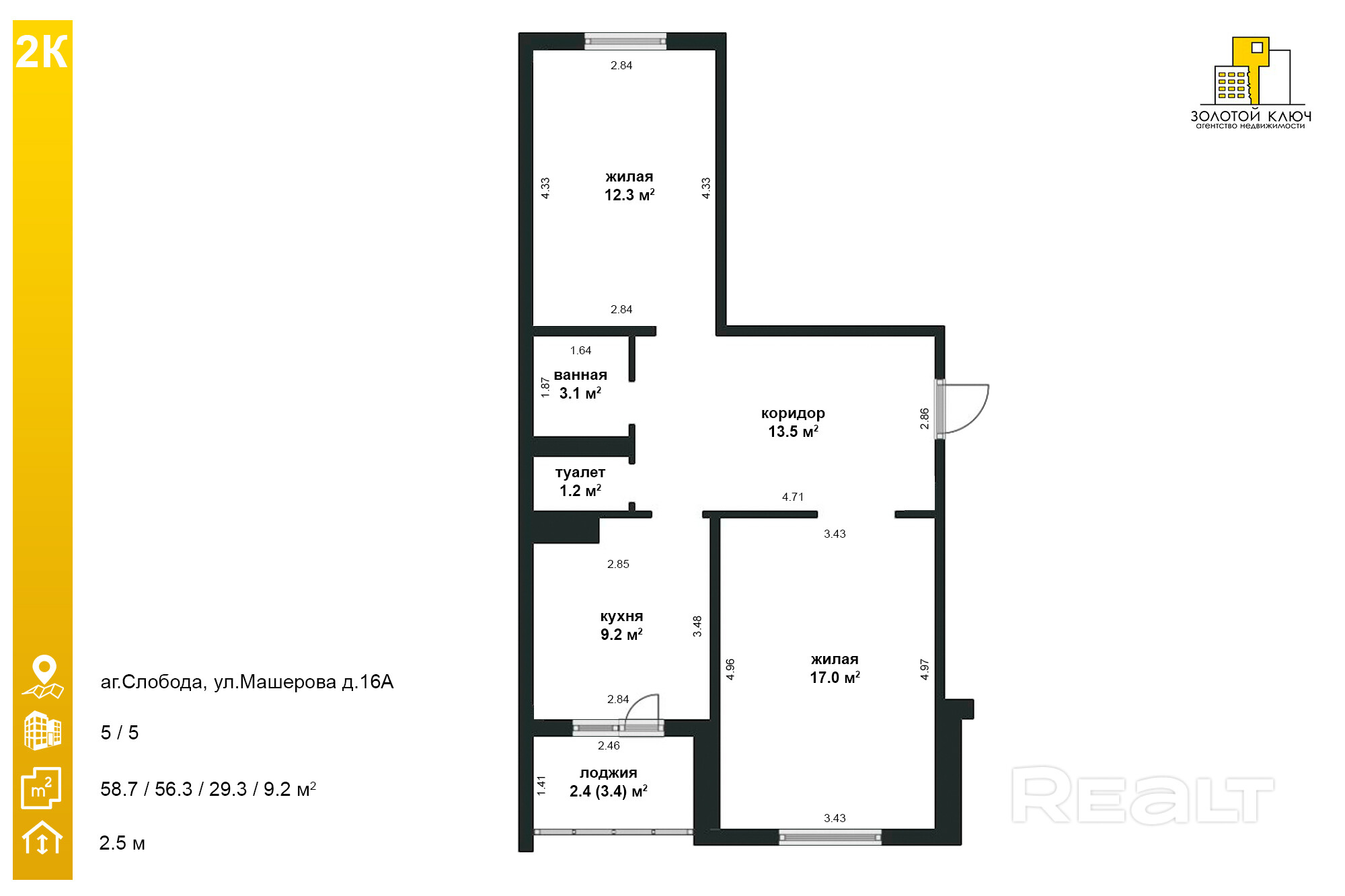 - общая площадь — 58,7 м2