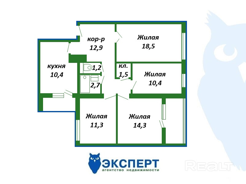 -4 раздельные комнаты, 2 лоджии,кладовка
