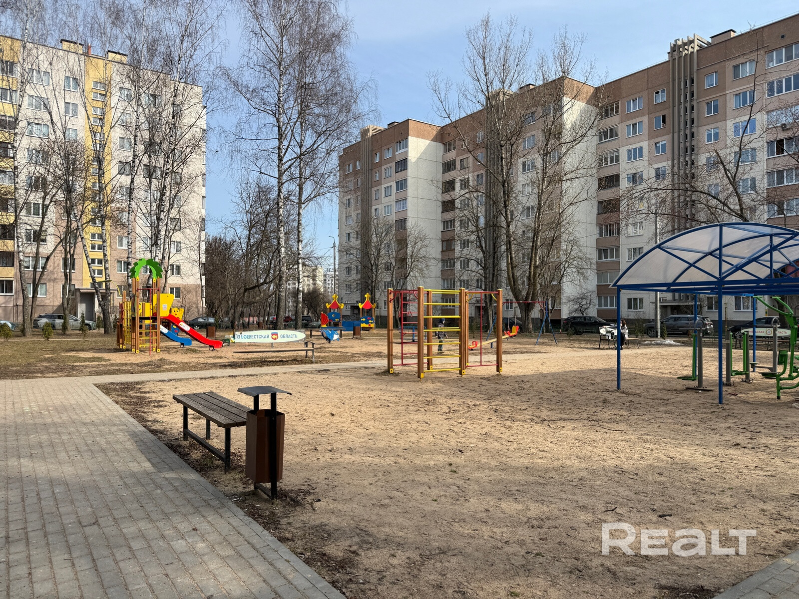 Дом просто утопает в зелени, всегда есть парковочные места для автомобилей. Придомовая территория оборудована современной детской площадкой.