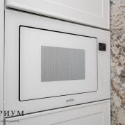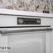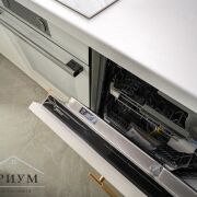 Встроенная кухня с бытовой техникой: духовой шкаф, варочная панель, посудомоечная машина, холодильник, морозильник.