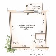 Монолитный дом 2025 года, 6/6 этаж. Площадь — 38,6 м2.