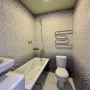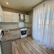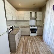 - Однокомнатная квартира на 3-м этаже 9-этажного панельного дома 2018 года постройки. Общая площадь 35,3 м2, жилая — 18,5 м2, кухня — 9,1 м2. Просторная комната с ламинатом и натяжным потолком, окна ПВХ выходят в тихий двор. Кухня 9,1 м2 с натяжным потолком, плиткой на полу и остающимся гарнитуром, выход на просторную лоджию с панорамным остеклением. Совмещённый санузел с современной плиткой и сантехникой. В коридоре — плитка и вместительный шкаф-купе. Металлическая входная дверь, ровные стены, качественная стяжка. Тамбур на 2 квартиры, приятные соседи.