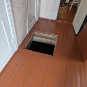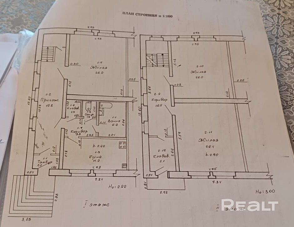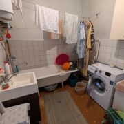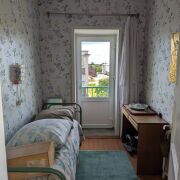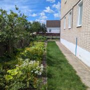Продаётся двухэтажная квартира (две квартиры на весь дом) общей площадью 146,6 м² с участком и гаражом. Квартира и участок ухожены. В квартире косметический ремонт, установлены пластиковые окна. Отопление центральное, горячая вода - бойлер. В квартире три огромных комнаты (одна на первом этаже и две на втором этаже), большая кухня 11,9 м², ванная 6,6 м², кладовая 1,3 м² на первом этаже, 2 мини-кладовки, подвал, небольшая комната 5,1 м² перед балконом. В 5 минутах ходьбы 2 продуктовых магазина