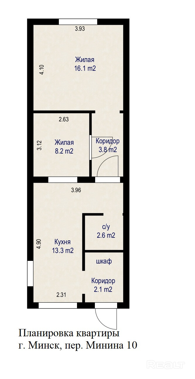 Продается 2-комнатная квартира в блокированном частном доме , пер.Минина ,10
