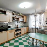 Оборудована всей необходимой техникой холодильник, стеклокерамическая плита, микроволновка