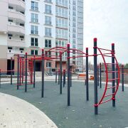 Двор состоит из двух домов, парковка по внешнему периметру. Во дворе расположены детские игровые площадки, зоны отдыха, велобокс и множество зелени.