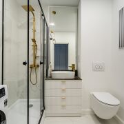🏡 Использованы исключительно качественные отделочные материалы. Стильная встроенная и корпусная мебель. Остаётся абсолютно всё: индукционная варочная поверхность Weisgauff с духовым шкафом DEXP, вытяжка, стиральная машина, холодильник, телевизор, диван-трансформер. В санузле современная плитка, душ-кабина, тропический душ, зеркало с подсветкой, полотенцесушитель, инсталляция. Встроенный шкаф-купе в прихожей. Полы в санузле – плитка, в жилой зоне – качественный ламинат, в прихожей - керамогранит. Стены оштукатурены. Надежная электрика с силовой разводкой. Каждый метр грамотно задействован, светлые тона и естественный свет гармонично вписываются в текстуру интерьера.