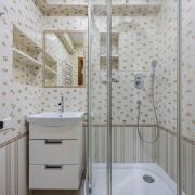 - В туалете установлен бойлер, гигиенический душ. Все коммуникации заменены. Доступ к коммуникациям через скрытый люк. В ванной уложена современная плитка, установлена немецкая сантехника скрытого монтажа, а также качественная душевая кабина.